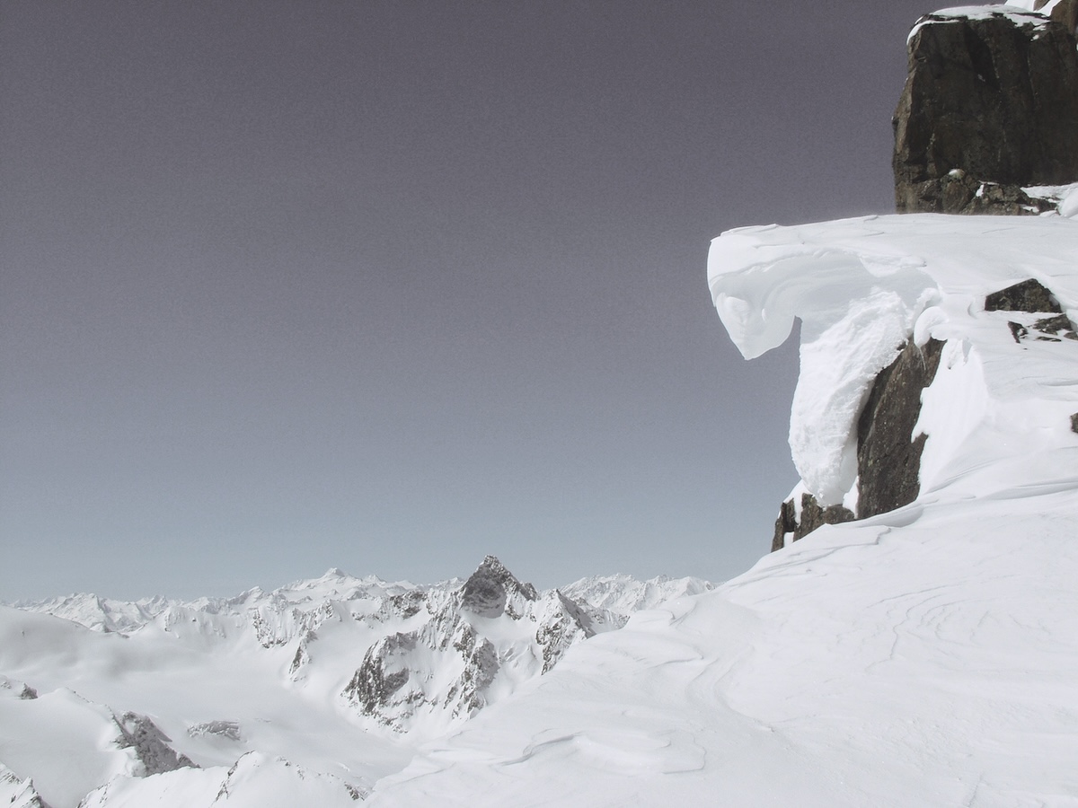Dálkově uvolněná lavina pod pod vrcholem Grauleitenspitze