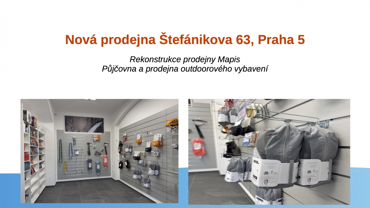 Jedním z významných programových bodů valné hromady byla informace právě o půjčovně a prodejně outdoorového vybavení. V nových prostorách ALPENVEREIN AUSTRIA – ALPSKÝ KLUB PRAHA, které i nyní částečně slouží jako prodejna omezeného sortimentu map a průvodců, se připravuje nový systém půjčování a prodeje vybavení pro turistiku v horách, VHT nebo feráty především značek Petzl. Po uvedení do úplného provozu budou zákazníkům nabízeny i výrobky od dalších dodavatelů. O výhledech a záměrech s rozšířením půjčovny a prodejny outdoorového vybavení seznámil přítomné člen představenstva skupiny Roman Mejšner.