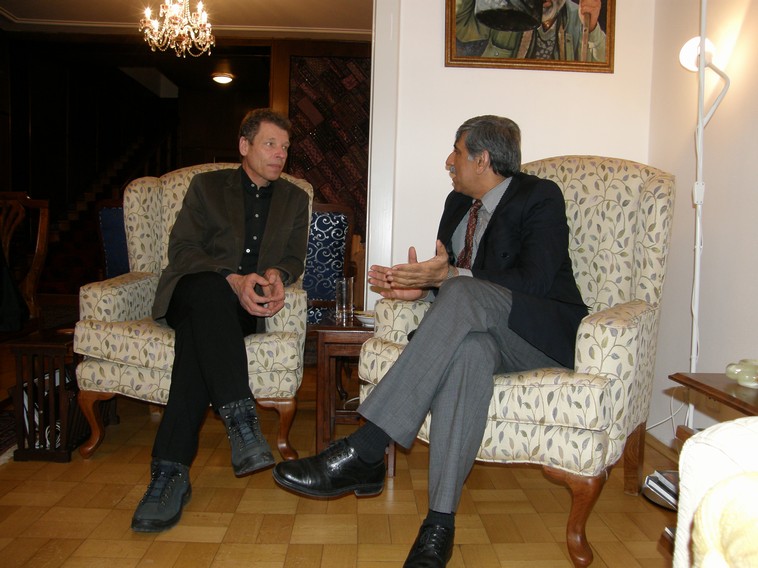 Na pozvání pakistánského ambassadora pana Aitzaze Ahmeda se ve středu 8. února 2012 uskutečnilo v prostorách pakistánského velvyslanectví v Praze velice zajímavé setkání s mnoha našimi předními horolezci. Besedy o aktivitách našich lezců v Pakistánu a o budoucích programech a expedicích v Karakoramu se zúčastnili Zdeněk Hrubý, Marek Holeček, Petr Mašek, Jan Trávníček a další. Pan Aitzaz Ahmed (pozn.: na první fotografii vlevo při rozhovoru s L. Jiráskem) vyjádřil zájem o rozšíření turistického poznávání i informovanosti o horských oblastech Pakistánu. Současně nabídl pomoc při hledání kontaktů a zprostředkování při přípravě expedicí a trekových programů našich horolezců a alpinistů v Pakistánu.