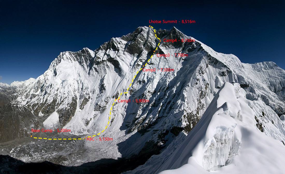 O jižní stěnu Lhotse se pokoušely velké osobnosti: Reinhold Messner, Tomo Cesen, Ricardo Cassin, Cristof Profit a Jerzy Kukuczka, který v ní v roce 1989 přišel o život. Jako první a do této doby jediní jižní stěnu prostoupili (po pilíři) Ukrajinec Serguey Bershov a Rus Vladimir Karataev. Dvěma zástupcům sedmnáctičlenné expedice se famózní výstup podařil v říjnu 1990. Sung-Taek Hong k jeho nové cestě dodává: „Jižní stěnou vede k vrcholu jediná bezpečná a logická cesta. Je chráněná před lavinami a pády kamenů. Už jsem ji vylezl do výšky 8250 m a doufám, že letos dolezeme i ten zbytek.“ Držíme palce, budeme informovat.