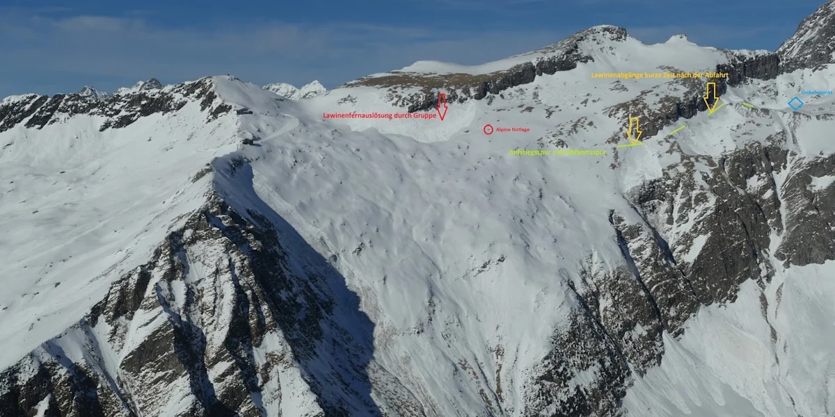 Při návratu z výstupu, přibližně ve 14:20 hod., byla pod vrcholem Grauleitenspitze na dálku spuštěna desková lavina. Horská policie uvedla, že ji skupina uvolnila sama, ale lavina členy skupiny nezasáhla. Skialpinisté se po této události rozhodli nepokračovat v sestupu, zůstali na místě a zavolali o pomoc.