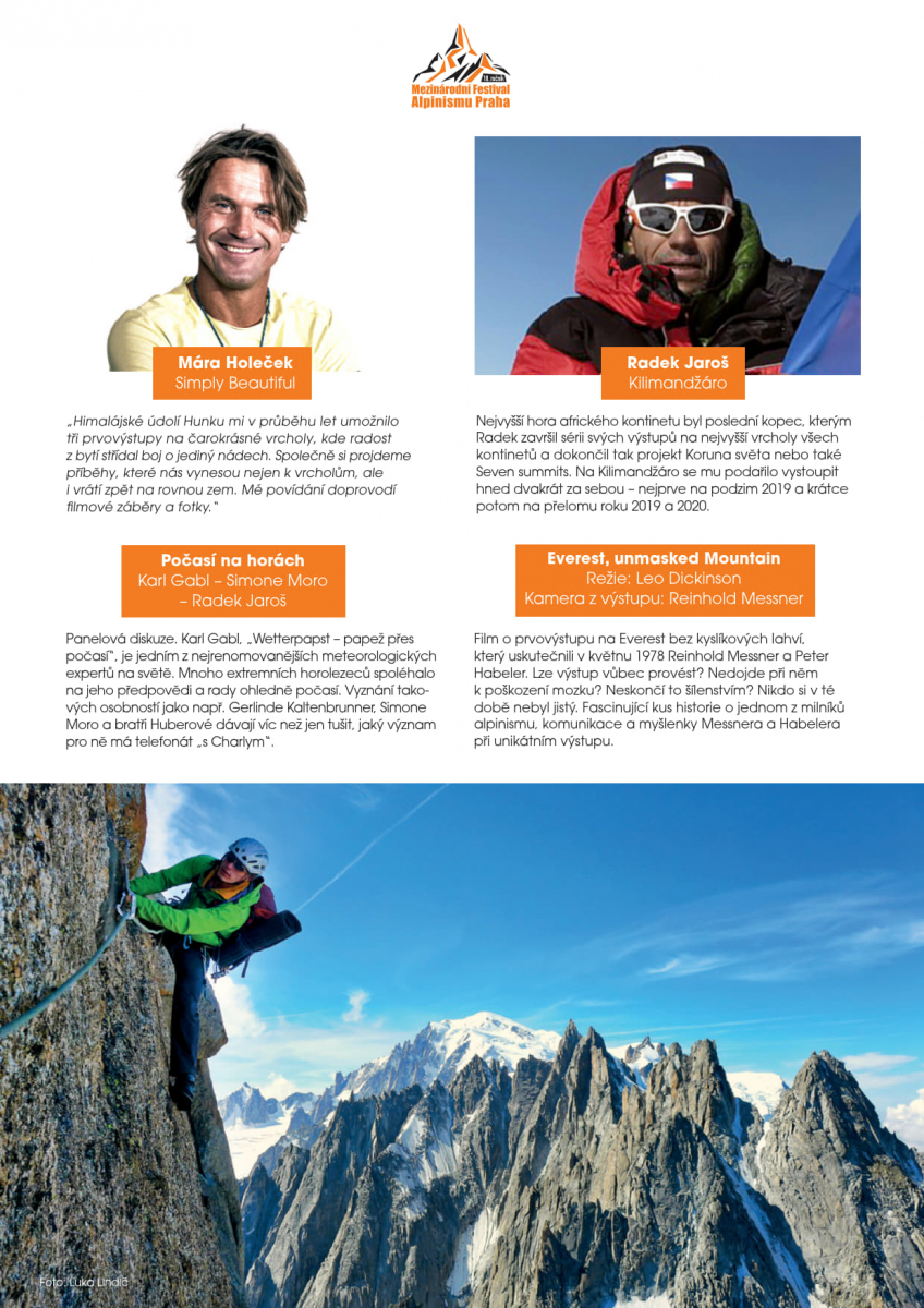 Festival je připraven - přehledné informace o osobnostech i přednáškách najdete na www.festivalalpinismu.cz.